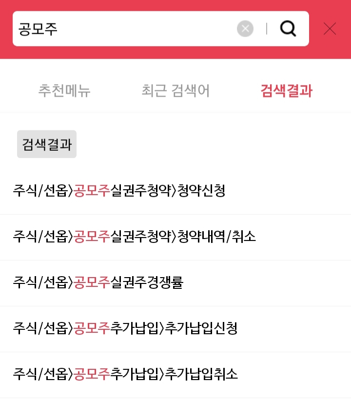 2) 우측상닷에 돋보기 모양 클릭하시고 공모주 입력해서 검색해주세요.