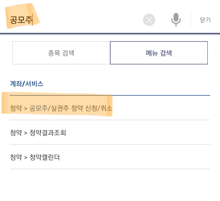 검색창에 공모주 검색 후 해당하는 내용을 선택하시면 됩니다.