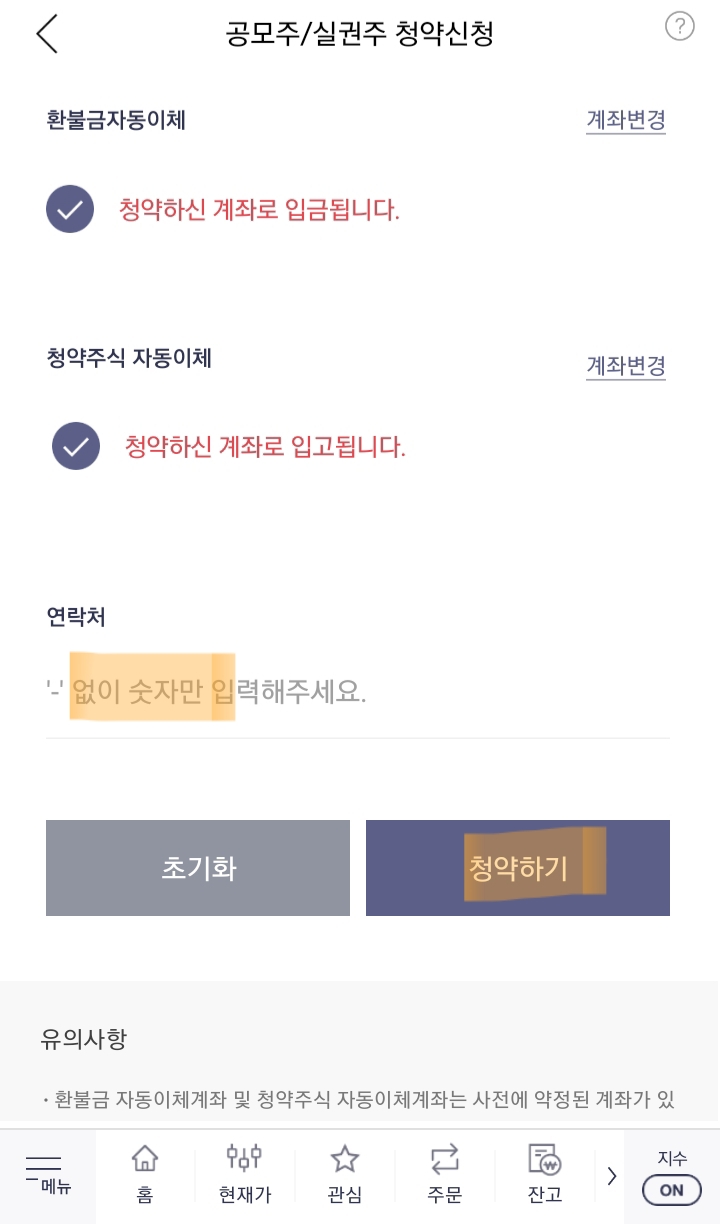 청약주식은 한국투자증권 신청계좌로 받을거라 그대로 놔뒀어요.
