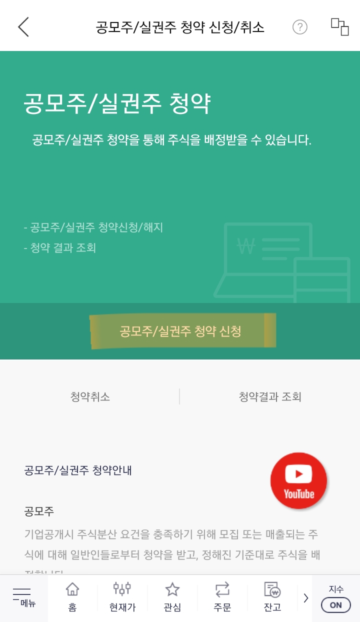 2) 공모주 입력 후 '청약> 공모주/실권주 청약 신청/취소' 누르시면 됩니다