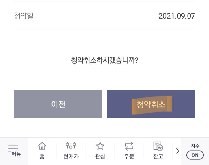 증거금 더 넣어서 청약주수를 늘리려고 청약취소를 눌렀어요.