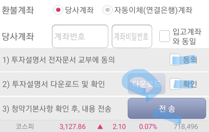 1) 2) 동의에 다 체크해 주시고 투자설명서도 다운로드해주세요.