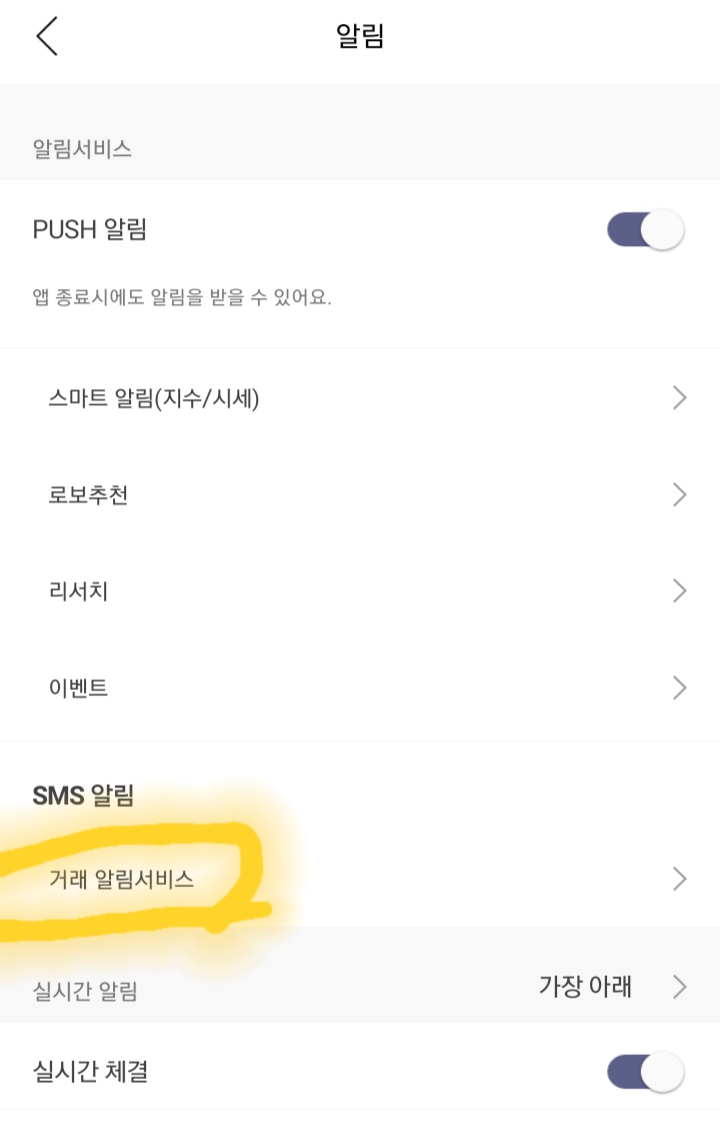 이렇게 했더니 매수 또는 매도 수량, 가격이 문자로 오더라고요.